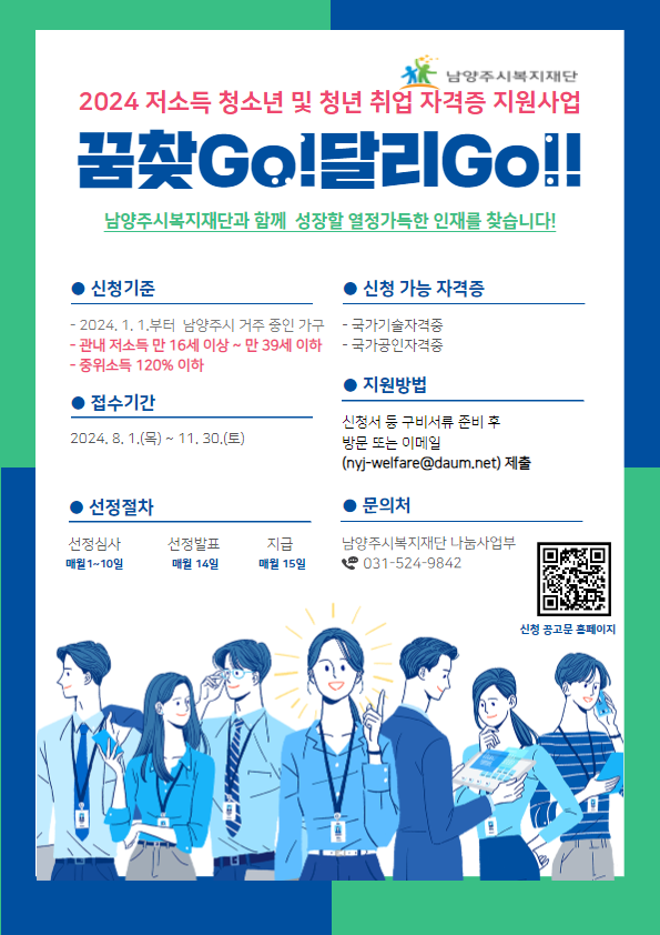 재단법인 남양주시복지재단에서 저소득 가구 청소년 및 청년 취업 자격증 지원사업을 아래와 같이 공고합니다.