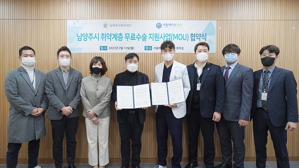 서울에이스병원은 남양주시복지재단과 ‘취약계층 무료수술 지원사업을 위한 MOU협약’을 체결했다고 밝혔다. 이번 협약은 경제적 어려움으로 수술을 받지 못하는 취약계층을 위해 무료 수술비 지원을 목적으로 마련되었다.