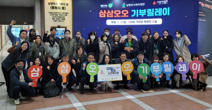 남양주시 노인복지관 4개소는 13일 연말연시를 맞아 지역 내 취약계층 지원을 위해 남양주시청 각 부서 또는 관내 사회단체를 대상으로 지난 8월부터 남양주시청 기부자 명예의 전당에서 진행하는‘삼삼오오 기부릴레이’에 22번째 주자로 참여했다.
