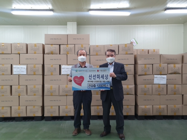 남양주시는 지난 10일 ㈜신선미세상이 관내 취약계층의 건강 증진을 위해 건강즙 1,200박스를 남양주시복지재단에 후원했다고 밝혔다.