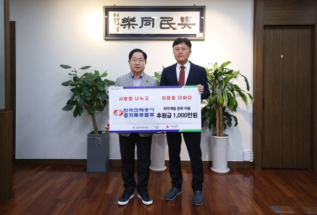 남양주시는 16일, 한국전력공사 경기북부본부(본부장 박우근)가 문화 취약계층 지원을 위해 남양주시복지재단에 연 1,000만 원 후원금을 약정 기부했다고 밝혔다.