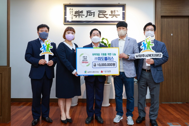남양주시복지재단(대표이사 심우만)은 29일 ㈜미도플러스(대표 김태희)가 취약계층 지원을 위한 후원금 1,000만원을 전달했다고 밝혔다.