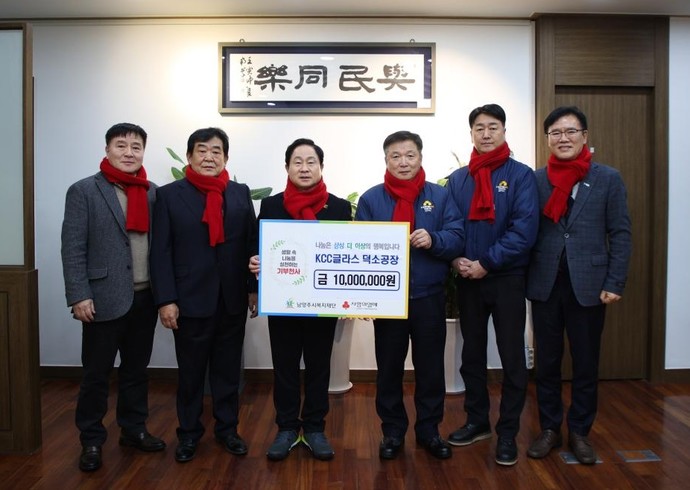 주광덕 시장은 "지난해에 이어 올해도 나눔 활동에 앞장서는 KCC글라스 덕소공장에 감사드린다"며 "앞으로도 남양주시는 시민의 복지증진과 더불어 기업하기 좋은 여건을 만들도록 노력하겠다”고 전했다.