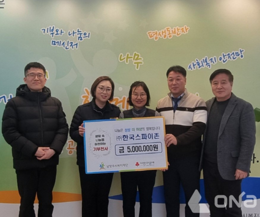 (남양주=열린뉴스통신) 임성규 기자=(주)한국스파이존(대표 박현자) 은 남양주시복지재단에 (대표이사 심우만)에 취약계