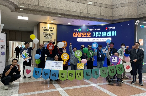 남양주시복지재단은 지난 10일 빛누리장애인보호작업장이‘삼삼오오 기부릴레이’에 11번째 주자로 참여했다고 전했다.
