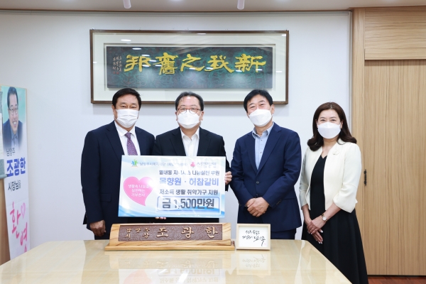 남양주시는 29일 별내동에 소재한 목향원과 허참갈비가 저소득 취약계층 지원을 위한 후원금 1,500만 원을 남양주시복지재단을 통해 지정 기부했다고 밝혔다.