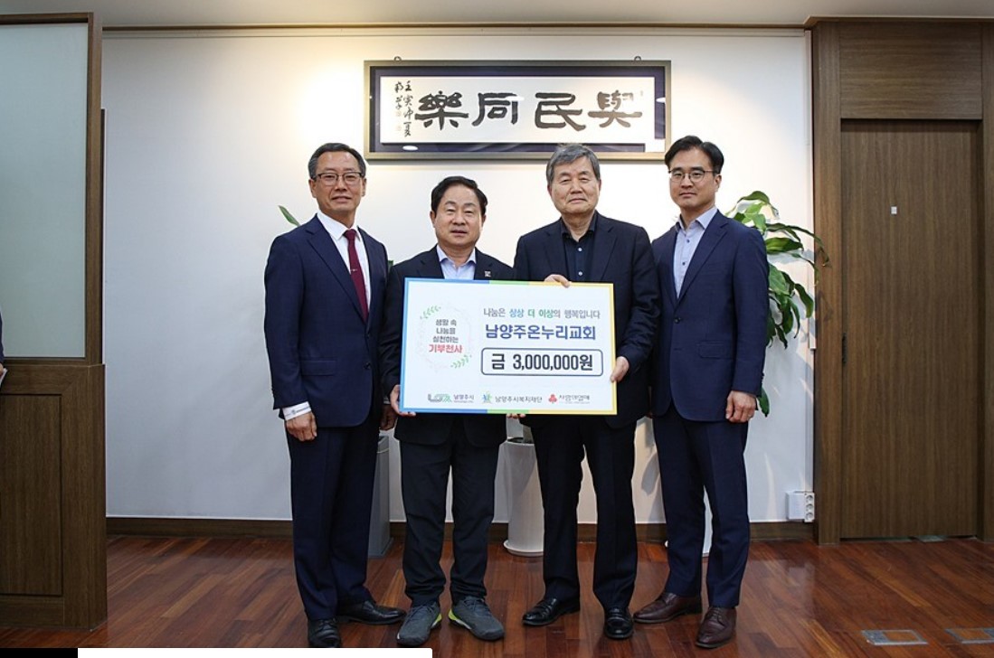 경기 남양주 온누리교회 (목사 이기복)는 지난 17일 남양주시 다문화 사업을 위해 기부금 300만원 을