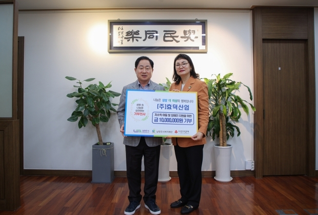 남양주시는 16일, 효덕산업이 지역 내 저소득층 아동과 장애인을 위해 성금 1,000만 원을 남양주시복지재단에 기탁했다고 밝혔다.