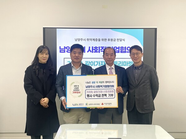남양주시 사회적기업협의회(회장 김정삼)는 지난 4일 지역 내 어려운 이웃을 돕기 위해 남양주시복지재단(대표이사 원병일)에 기부금을 전달했다.