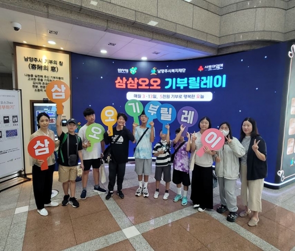 ‘삼삼오오 기부릴레이’는 남양주시청 1층에 위치한 기부자 명예의 전당에서 진행되는 기부 캠페인으로, 관내 지역사회단체를 대상으로 매월 3일과 13일에 5천 원을 기부해 행복한 오늘을 만들자는 취지로 운영되고 있다.