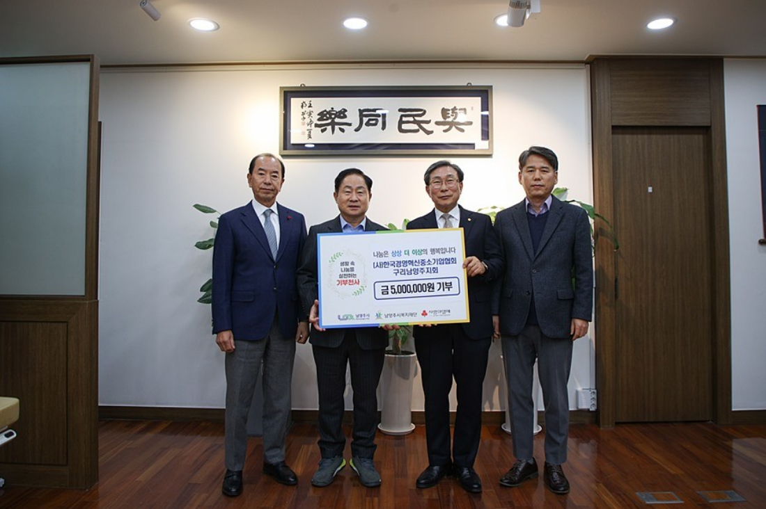 경기 남양주시(시장 주광덕)는 16일, 시장집무실에서 (사)한국경영혁신중소기업협회 구리남양주지회(지회장 문한경)와 함께 후원금 전달식을 가졌다.