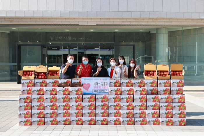 남양주시복지재단(대표이사 우상현)은 지난 14일 남양주 금곡동 소재 행사기획업체인 ㈜다스(대표 김춘재)에서 관내 취약계층을 위해 사과 317박스(634만 원 상당)를 후원했다고 밝혔다.