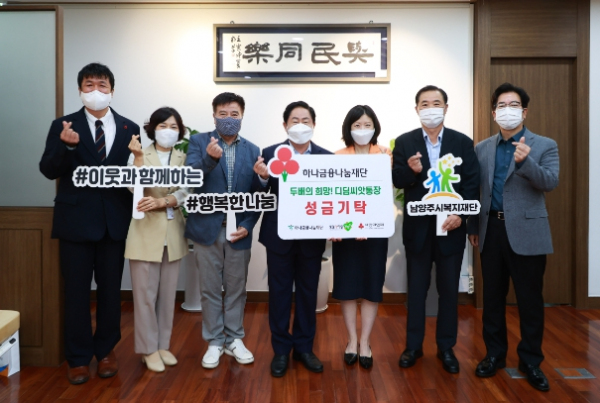 이날 후원금 전달식에는 주광덕 남양주시장을 비롯해 하나금융나눔재단 최은정 차장, 하나금융공익재단 민영도 하나케어센터 원장, 경기 사회복지공동모금회 북부사업본부 이용진 과장, 남양주시복지재단 심우만 대표이사 등이 참석했다.
