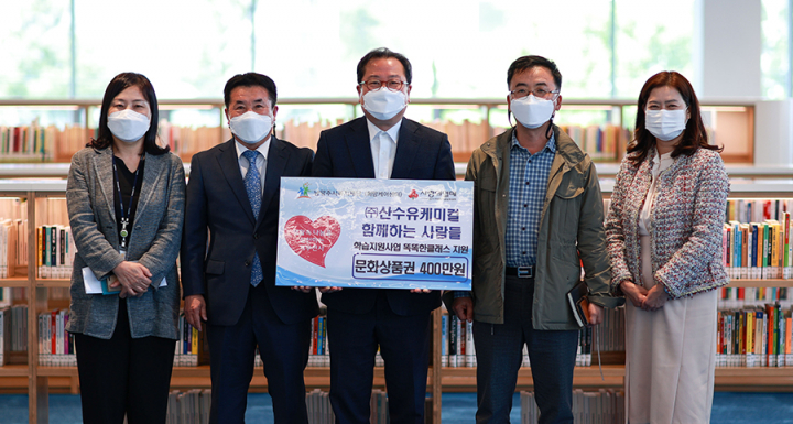 ㈜산수유케미컬(대표 최영채)과 봉사 단체인 ‘함께하는 사람들’은 3일 학습 지원 사업인 똑똑한 클래스에 참여하는 아동들을 대상으로 교재 마련을 위한 문화상품권 400만원을 남양주시복지재단을 통해 기부했다.