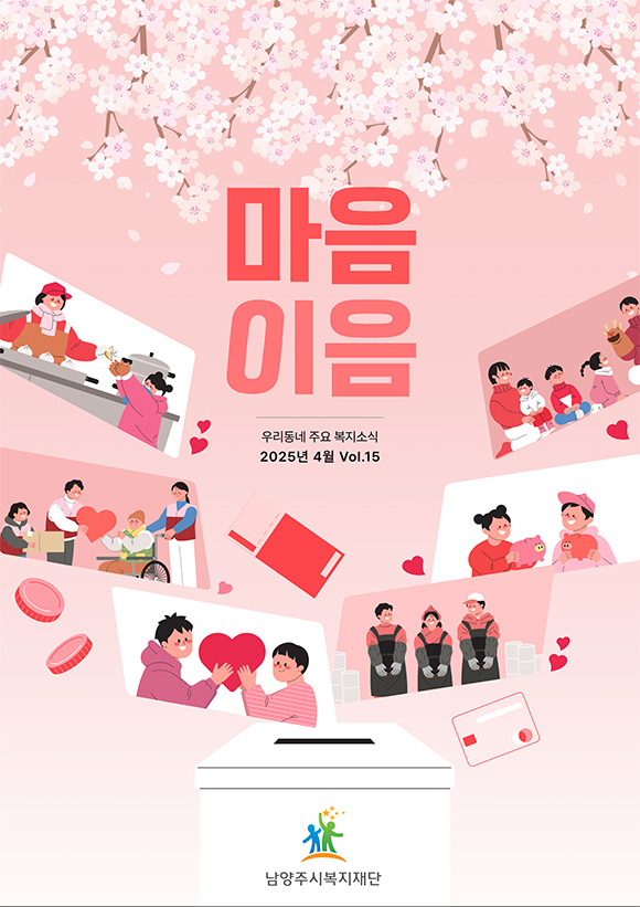 남양주시복지재단 뉴스레터 15호 (2025년 1분기) 작성자 개발자 등록일자 2025년 4월 3일 10시 40분 42초 조회 271 ▲ 위 이미지를 클릭하시면 뉴스레터를 보실수 있습니다 04_뉴스레터.jpg [ Size : 160.23KB, Down : 463 ] 미리보기 다운로드 목록보기