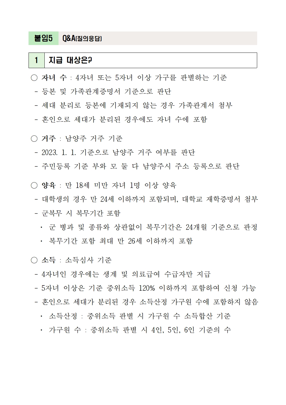 - 붙임5. 2023년 「남양주 다둥이 多가치 키움」 사업 Q&A007.jpg [ Size : 178.81KB, Down : 575 ] 미리보기 다운로드