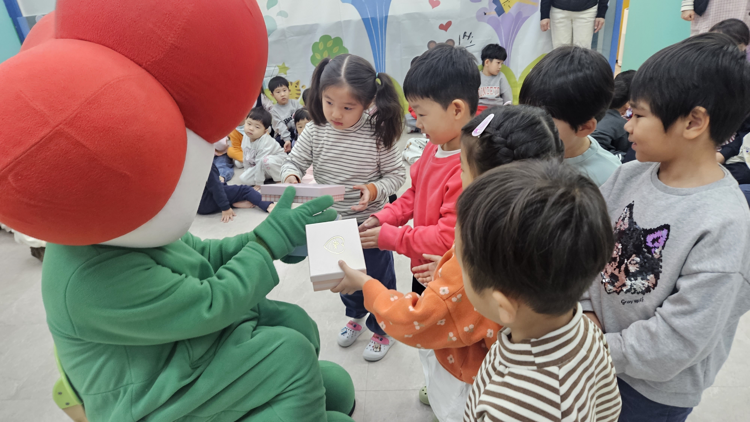 열매둥이가 기부금을 받고 아이들과 사진 촬영도 진행하는 가운데,