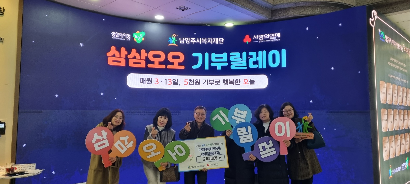 남양주시 각 부서와 관내 사회단체가 함께하는 삼삼오오 기부릴레이에 남양주시 다함께 복지공동체 회원분들께서 동참했습니다.
