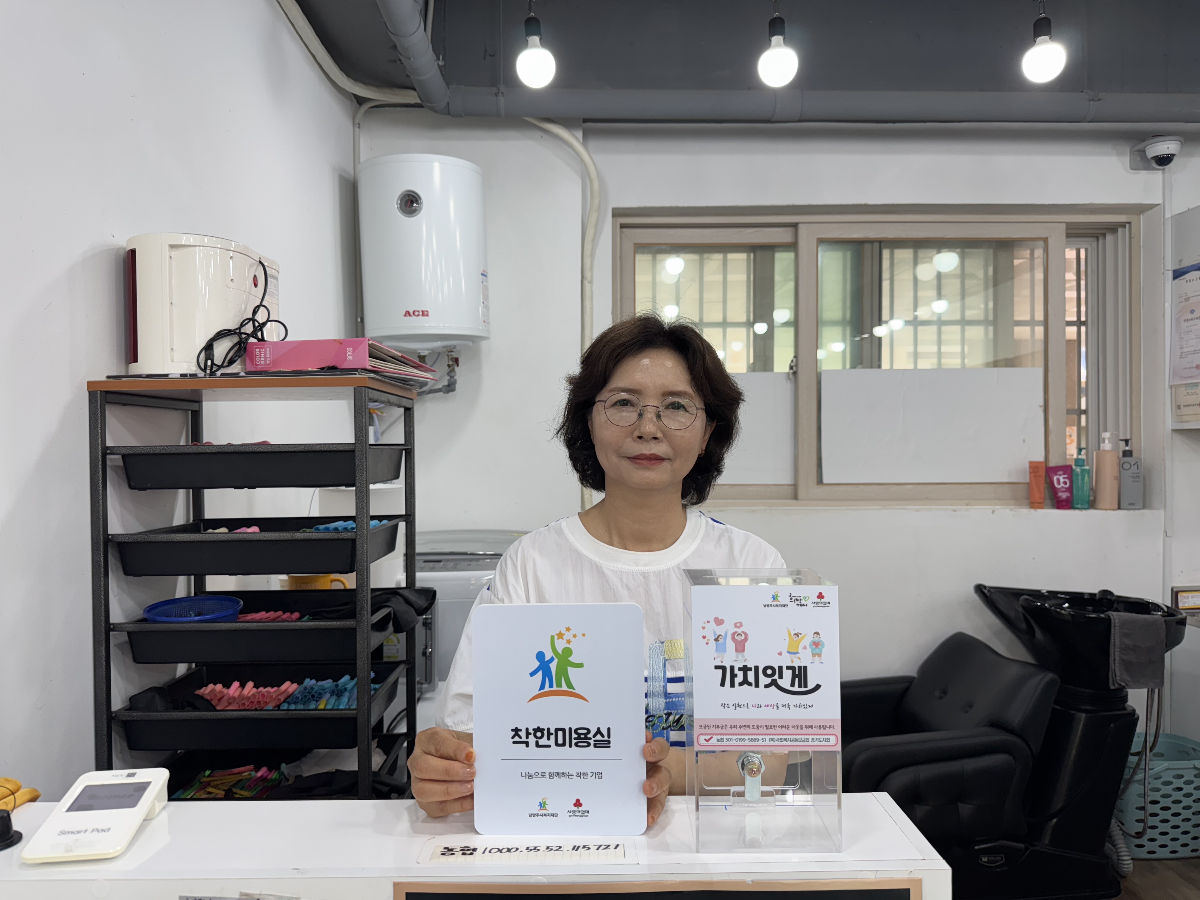 착한기부 [착한미용실] 가위나라 | [연번] : | [일자] : 2025.06.18.(수) 작성자 관리자 등록일자 2025년 6월 26일 16시 42분 27초 조회 182 [착한미용실] 제3호 '가위나라'- 가 입 일 : 2025. 6. 18.(수)- 소 재 지 : 경기도 남양주시 오남읍※ 착한미용실이란?미용실의 앞머리 커트 수익금을 어려운 이웃을 위해 기부하는 남양주시복지재단의 소상공인 소액기부 프로그램입니다. 사진 (2).jpg [ Size : 1.51MB, Down : 80 ] 미리보기 다운로드 목록보기