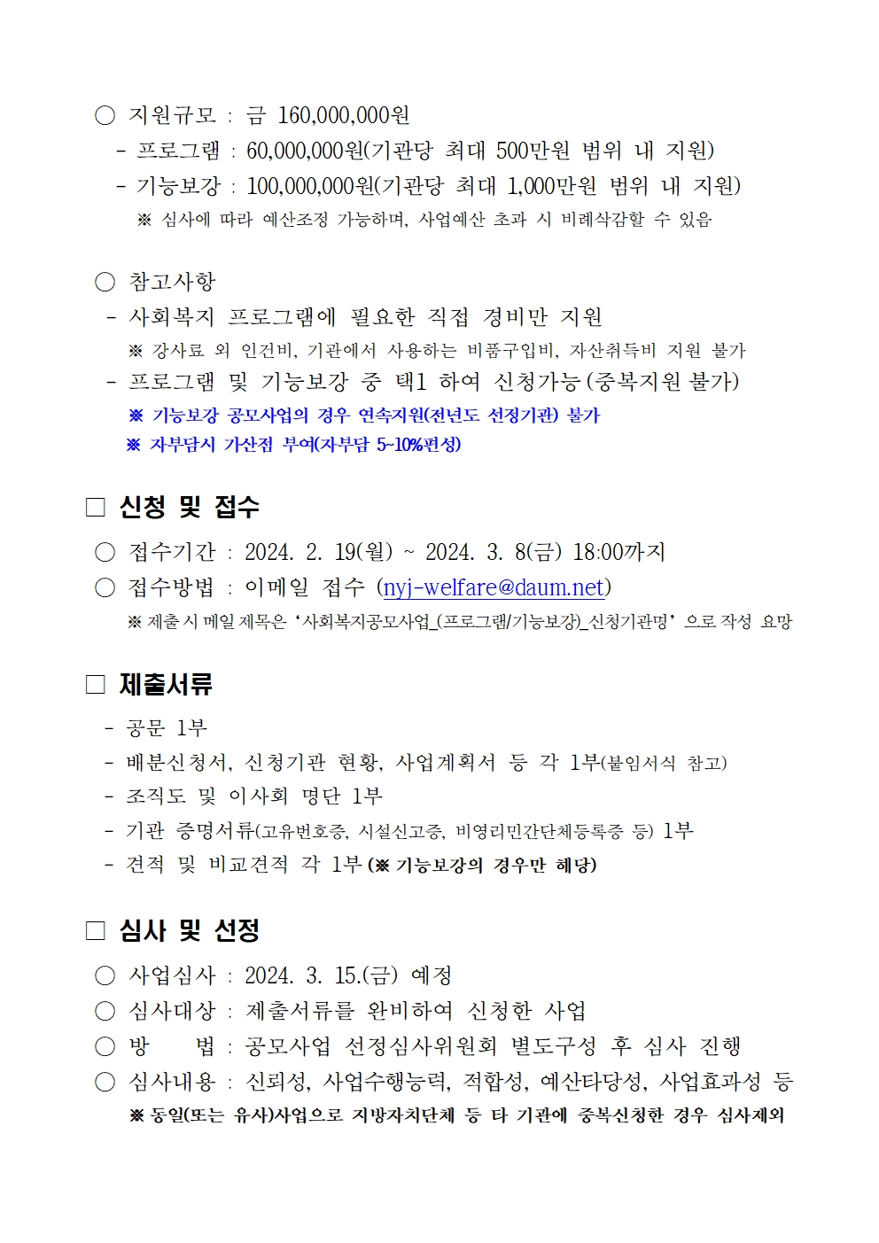 공모사업 2024 사회복지 공모사업(프로그램 및 기능보강) 공고