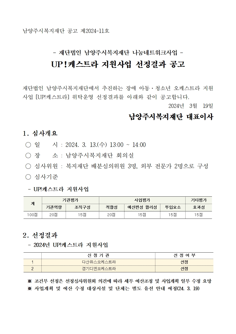 공모사업 2024 UP!케스트라 지원사업 선정결과 공고 작성자 관리자 등록일자 2024년 3월 19일 11시 6분 55초 조회 738 2024 UP케스트라 지원사업 선정결과 공고.pdf [ Size : 94.26KB, Down : 749 ] 다운로드 2024 UP케스트라 지원사업 선정결과 공고001.jpg [ Size : 422.55KB, Down : 429 ] 미리보기 다운로드 2024 UP케스트라 지원사업 선정결과 공고002.jpg [ Size : 398.33KB, Down : 431 ] 미리보기 다운로드 목록보기