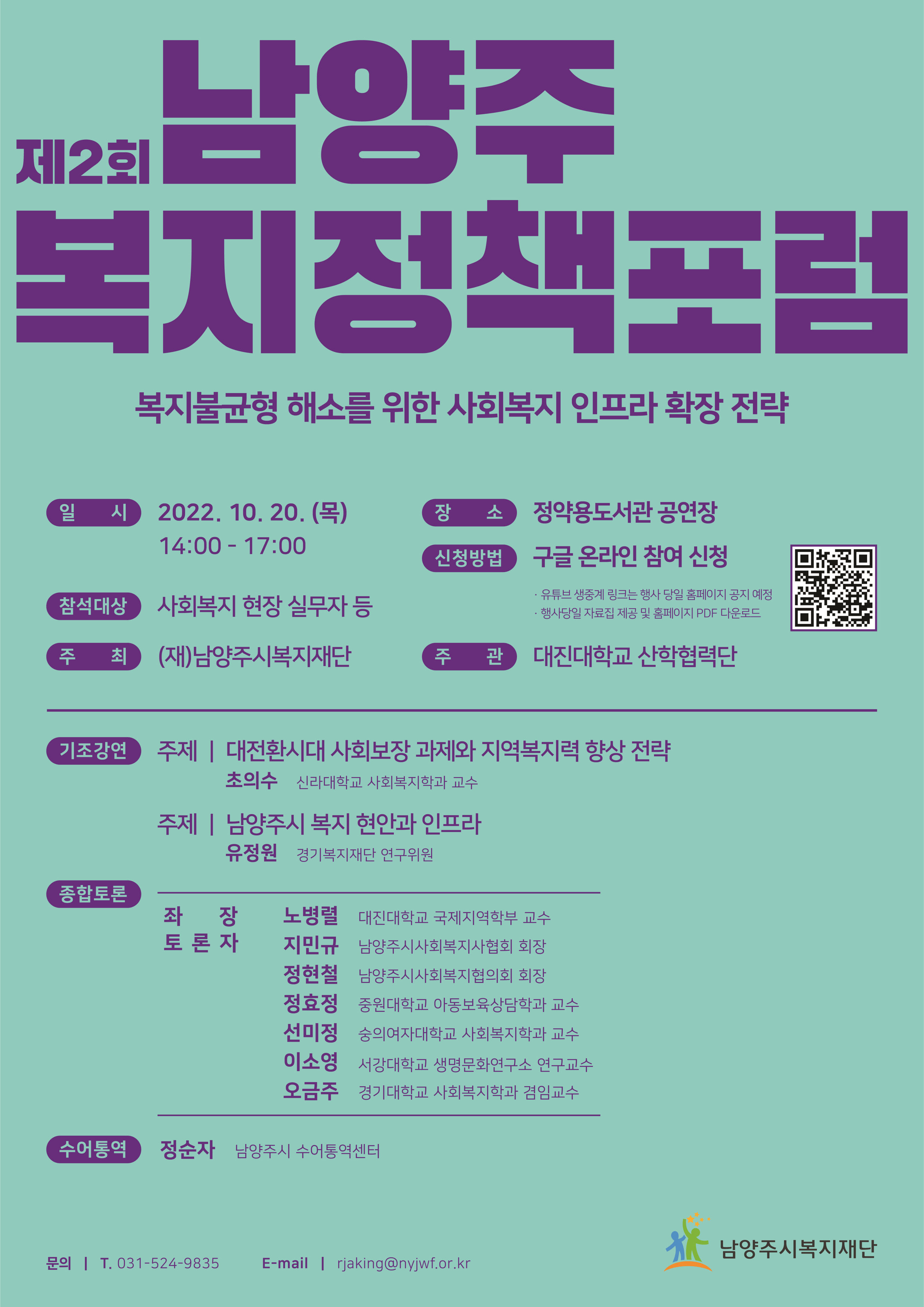 공지 남양주시복지재단 「제2회 남양주 복지정책 포럼」참가 신청 안내
