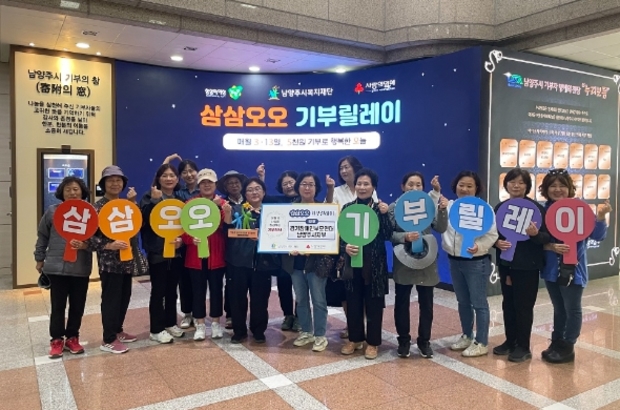 ‘삼삼오오 기부릴레이’는‘매월 3일과 13일, 5천 원 기부로 행복한 오늘’을 의미하며 지역 내 나눔문화를 확산시키기 위해 남양주시청 각 부서와 지역사회 단체가 함께 참여하는 릴레이 기부캠페인이다.