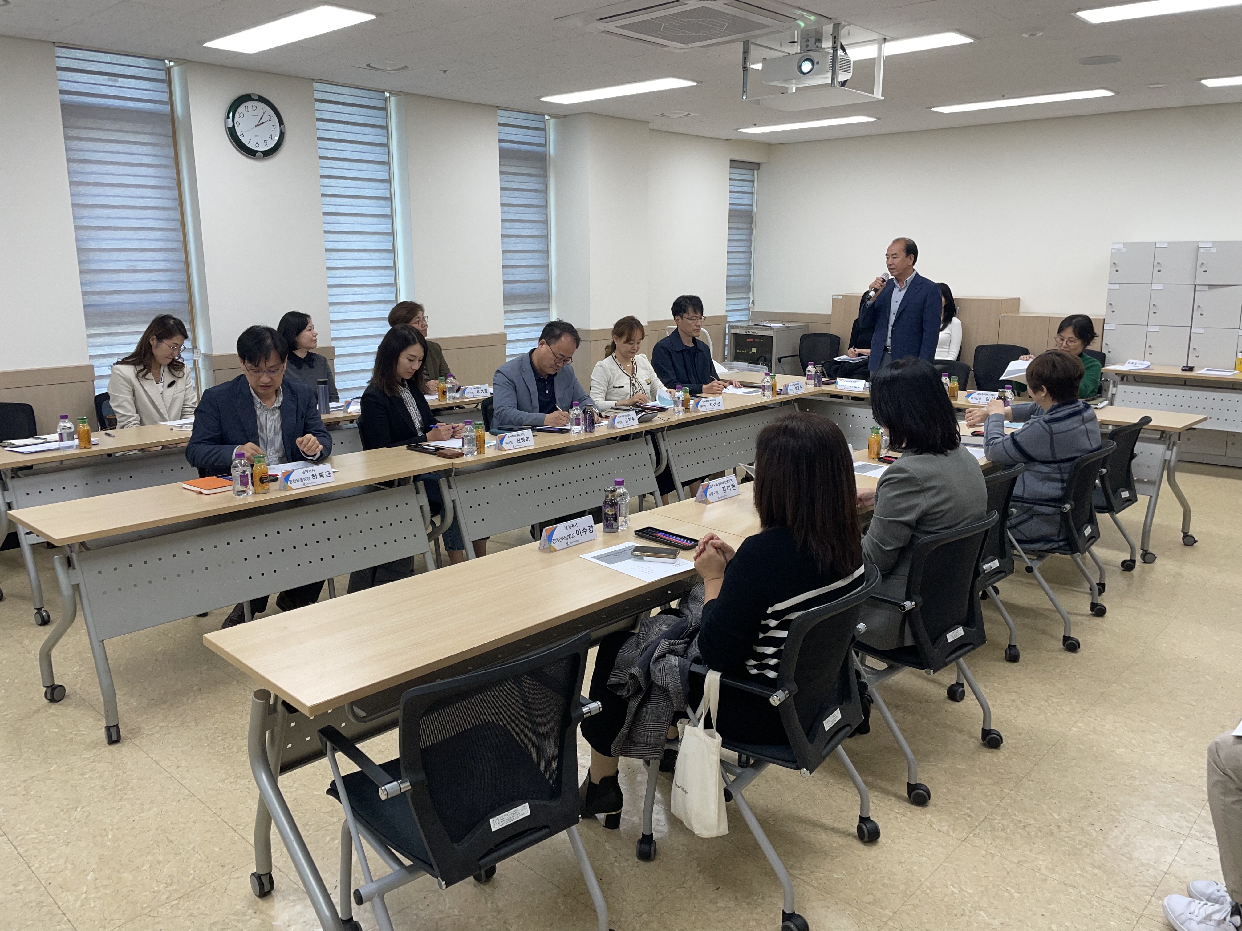 사회복지 정책연구 중간보고회(복지시설 현안진단 연구) | [연번] : | [일자] : 2024.10.23.(수) 작성자 관리자 등록일자 2024년 10월 28일 15시 6분 9초 조회 369 2024년 10월 23일(수) 오후 2시 다산행정복지센터 소회의실에서 2024년 남양주시복지재단 사회복지 정책연구 중 「남양주시 사회복지관 공급량 적정성 및 현안진단 연구」의 중간보고회를 실시하였습니다.남양주시 내 노인·장애인·종합복지관 관계자 및 담당 공무원 등 민관을 아우르는 복지 전문가들이 모여연구진행 현황에 대해 질의응답 및 수정‧보완사항을 논의하는 시간을 가졌습니다.이 날 공유된 의견들을 토대로 실효성 있는 연구가 되도록 노력하겠습니다. 2024-10-23 복지관 현안진단 연구 중간보고회 1.jpg [ Size : 3.27MB, Down : 194 ] 미리보기 다운로드 2024-10-23 복지관 현안진단 연구 중간보고회 2.jpg [ Size : 3.59MB, Down : 196 ] 미리보기 다운로드 목록보기