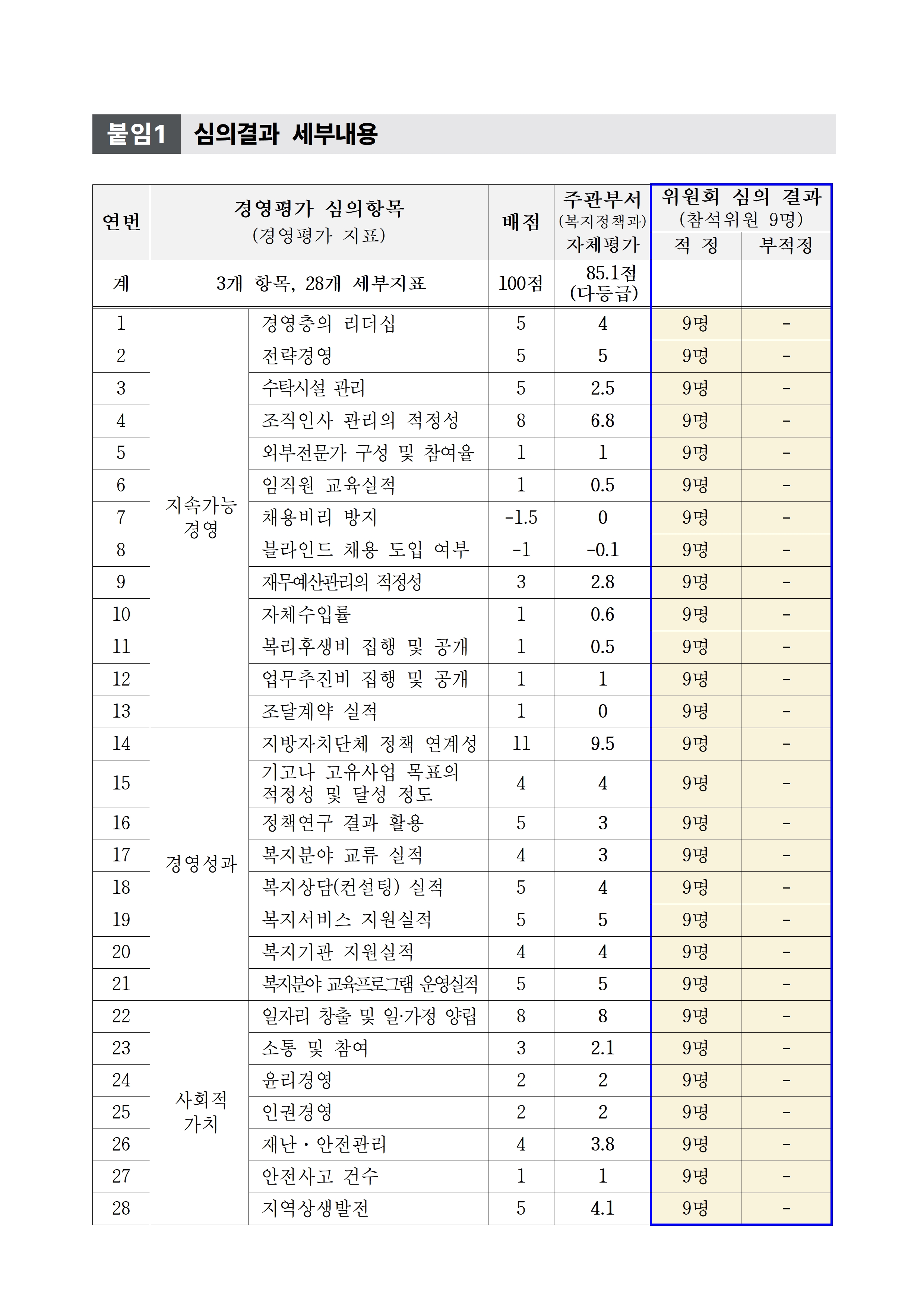 경영실적평가 2024년 남양주시복지재단 경영평가 결과 작성자 관리자 등록일자 2024년 6월 28일 10시 39분 11초 조회 687 지방자치단체 출자출연기관의 운영에 관한 법률 제32조에 따라 2024년 남양주시복지재단 경영평가 결과를 공시합니다. 2024년 경영평가 결과.jpg [ Size : 1.65MB, Down : 438 ] 미리보기 다운로드 목록보기
