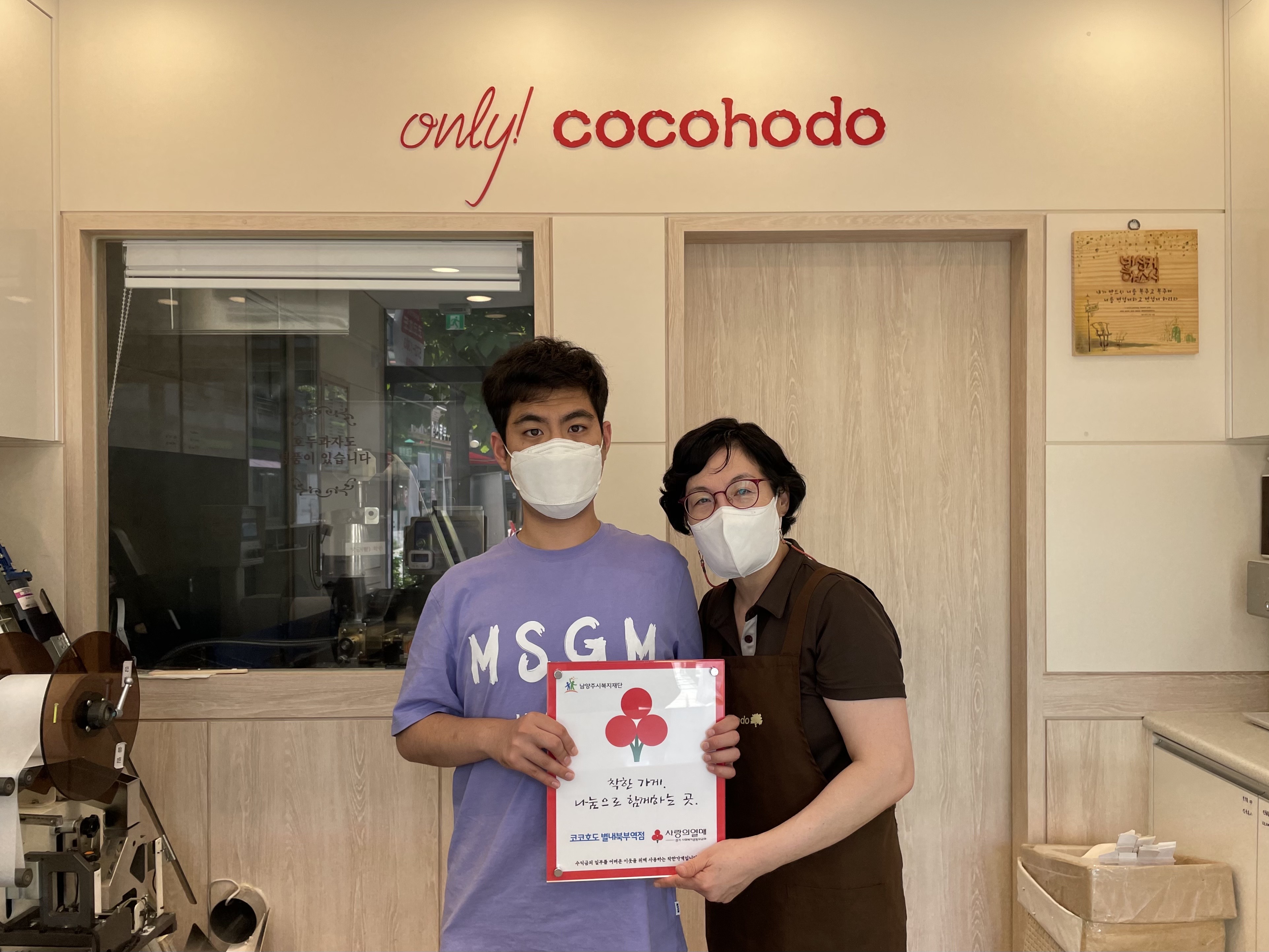 착한기부 [착한가게] 코코호도 별내북부역점 | [연번] : | [일자] : 2021년 9월 작성자 관리자 등록일자 2021년 10월 25일 15시 7분 29초 조회 596 - 남양주시복지재단 착한가게 2호 코코호도 별내북부역점 사진2.jpg [ Size : 1.55MB, Down : 366 ] 미리보기 다운로드 목록보기