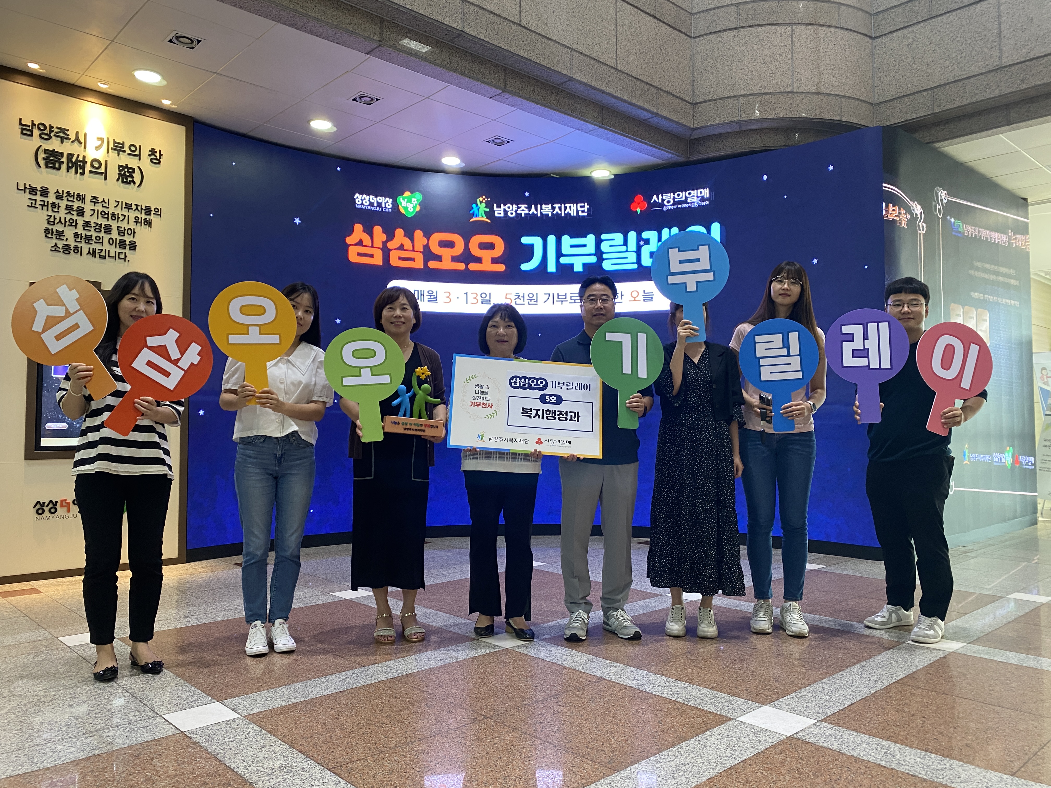 남양주시 각 부서와 관내 사회단체가 함께하는 삼삼오오 기부릴레이에 남양주시 복지행정과가 동참했습니다.