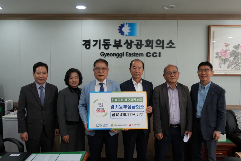 경기동부상공회의소 | [연번] : | [일자] : 2025.04.24. 작성자 관리자 등록일자 2025년 4월 30일 9시 32분 9초 조회 204 - 경기동부상공회의소- 산불 피해 복구 지원성금 4천1백4십1만원 지원 동부상공회의소.jpg [ Size : 75.34KB, Down : 91 ] 미리보기 다운로드 목록보기