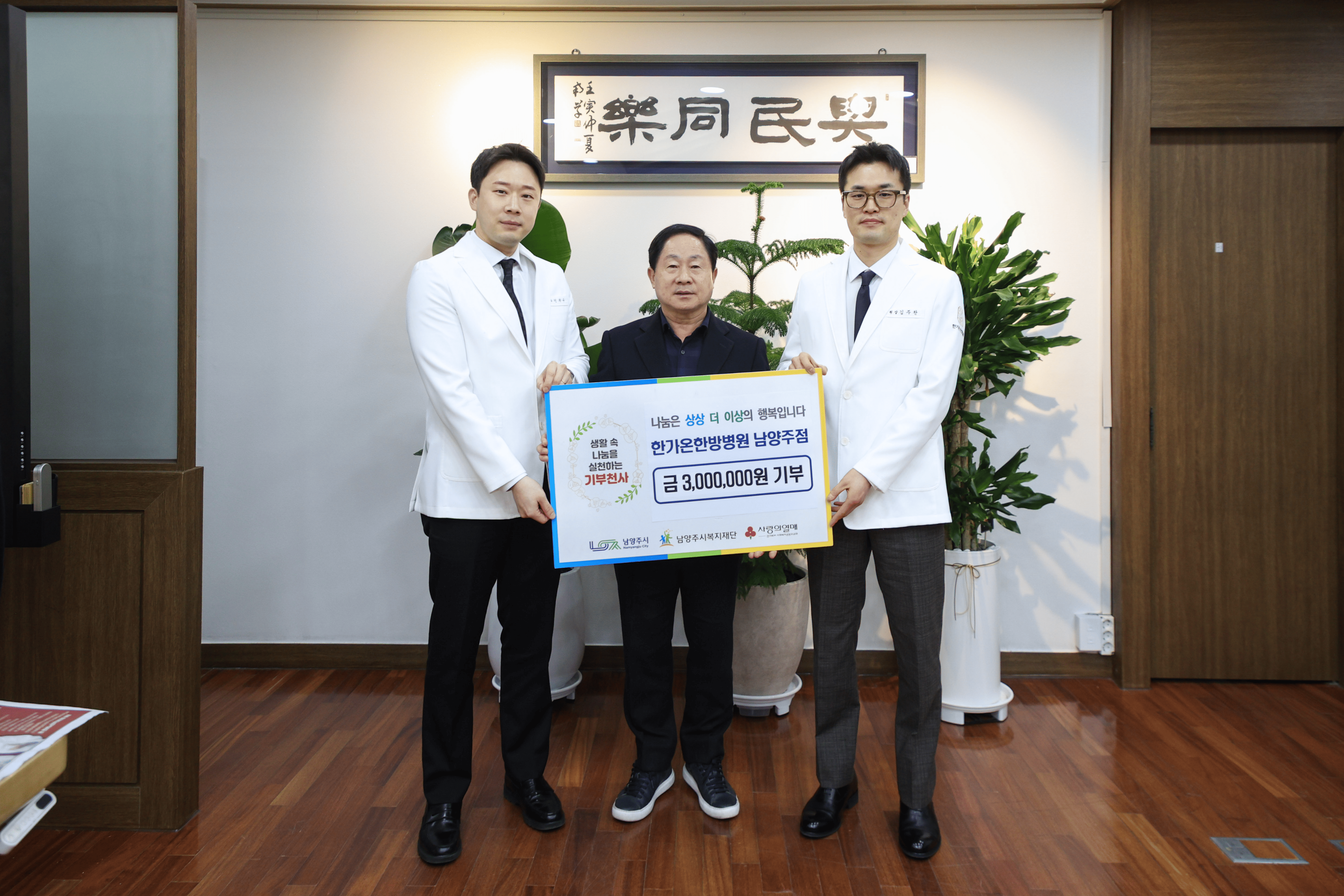 1월 8일 호평동에 위치한 한가온한방병원 남양주점이 지역 내 취약계층 지원을 위해 후원금 300만원을 기탁해주셨습니다.