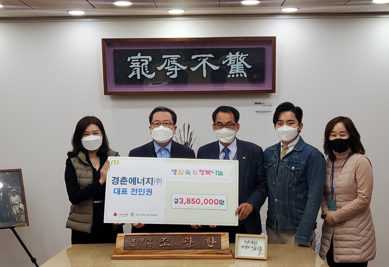 경춘에너지㈜, 남양주시복지재단에 후원금 전달, LPG판매량 중 kg당 1원씩 적립해 385만원 마련 (2021.02.02.)