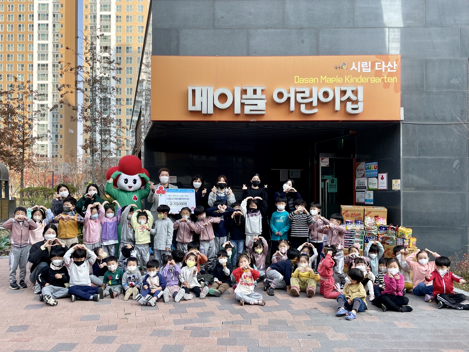 남양주시복지재단은 지난 8일 시립다산메이플어린이집이 작품전시회를 통해 얻은 수익금 203,000원과 라면 28박스를 전달했다고 밝혔다.