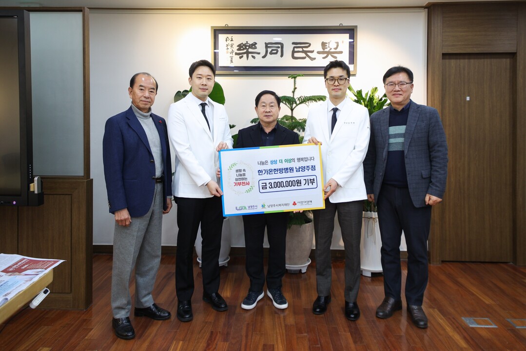 주광덕 남양주시장은 “지역사회에 대한 깊은 애정으로 나눔을 실천해 준 한가온한방병원 남양주점에 감사드린다”며 “이 같은 민간의 자발적인 기부가 남양주시 복지 안전망을 더욱 단단하게 만드는 만큼, 시에서도 나눔 문화 확산을 적극 지원하겠다”고 말했다.