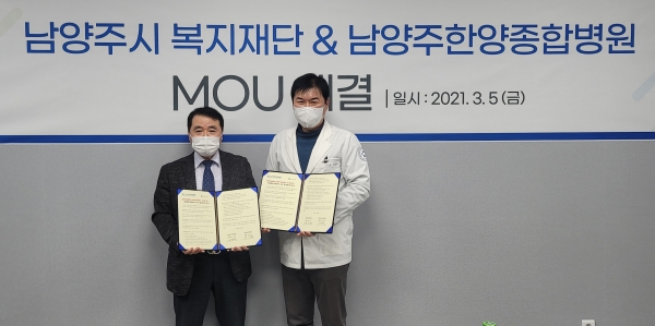 남양주시 복지재단(대표이사 우상현)과 남양주 한양병원(병원장 장진혁)이 지난 5일 지역사회 복지발전과 의료서비스 확대를 위한