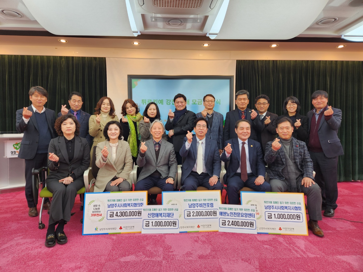 남양주시사회복지협의회, 신망애복지재단, 남양주비전포럼, 에덴노인전문요양센터, 남양주시사회복지사협회 | [연번] : 정보가 없습니다. | [일자] : 2023.02.28. 작성자 관리자 등록일자 2023년 3월 8일 17시 41분 4초 조회 437 ▷ 후원일자 : 2023년 2월 28일(화)▷ 후원내용 : 튀르키예 피해 돕기 성금 1,070만원 KakaoTalk_20230228_172929823.jpg [ Size : 537.53KB, Down : 202 ] 미리보기 다운로드 목록보기