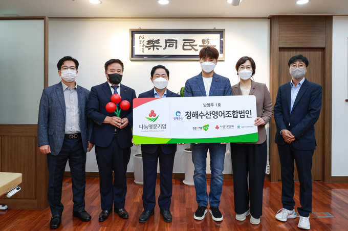 경기 남양주시(시장 주광덕)는 28일 별내동 소재 청해수산 영어조합법인(대표 황문찬)이 관내 저소득 가정 청소년들의 교육비 지원을 위해 매달 300만 원 기부를 약정하며 남양주의 첫 번째 나눔 명문기업으로 선정됐다고 밝혔다.