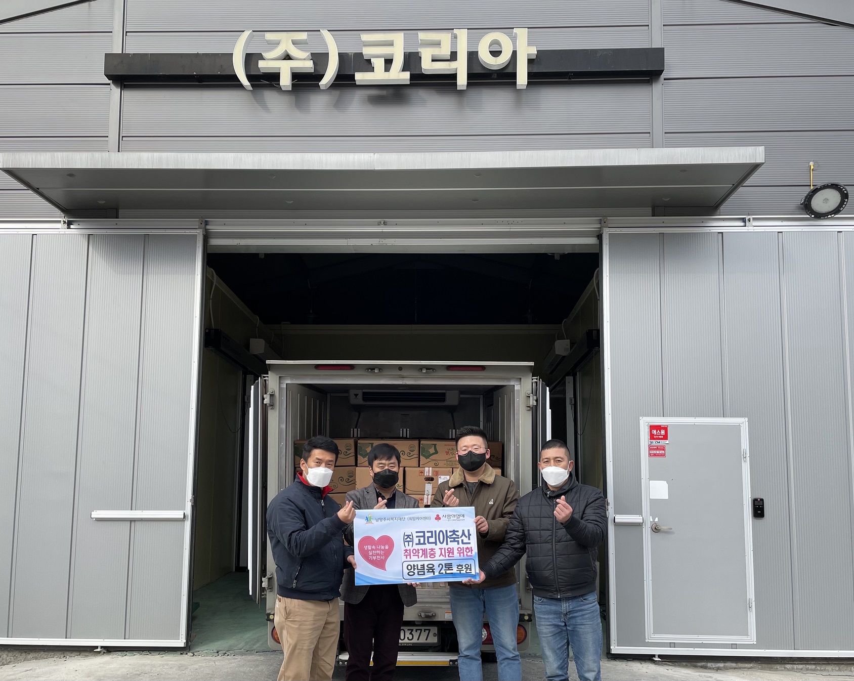 전달식에 참여한 ㈜코리아축산 박민수 대표는 “코로나19로 어려움에 처한 사회적 약자인 소외계층에 작은 힘이나마 보태고자 기부하게 됐다.”라며 “앞으로도 어려운 이웃에게 희망을 드리기 위한 노력을 계속해서 이어갈 것”이라고 전했다.