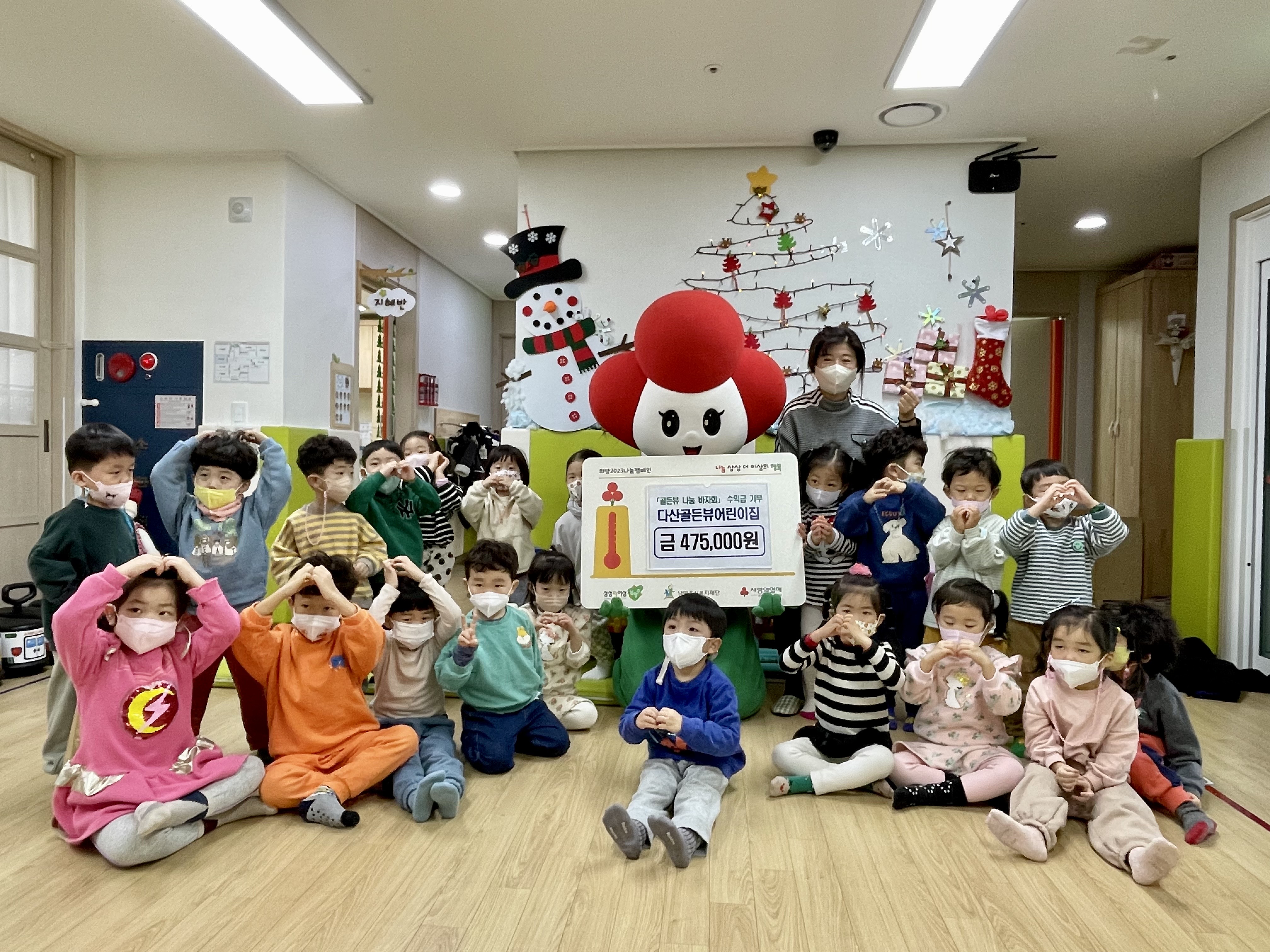 시립다산골든뷰어린이집 김태숙 원장은 “아이들과 부모님들이 뜻을 합쳐 마련한 기부금으로 모두가 행복한 한 해가 되길 기원하는 마음에 후원을 결심했다.”라며 “십시일반으로 뜻깊게 모은 정성이 필요한 분들께 잘 전달되길 바란다.”라고 전했다.