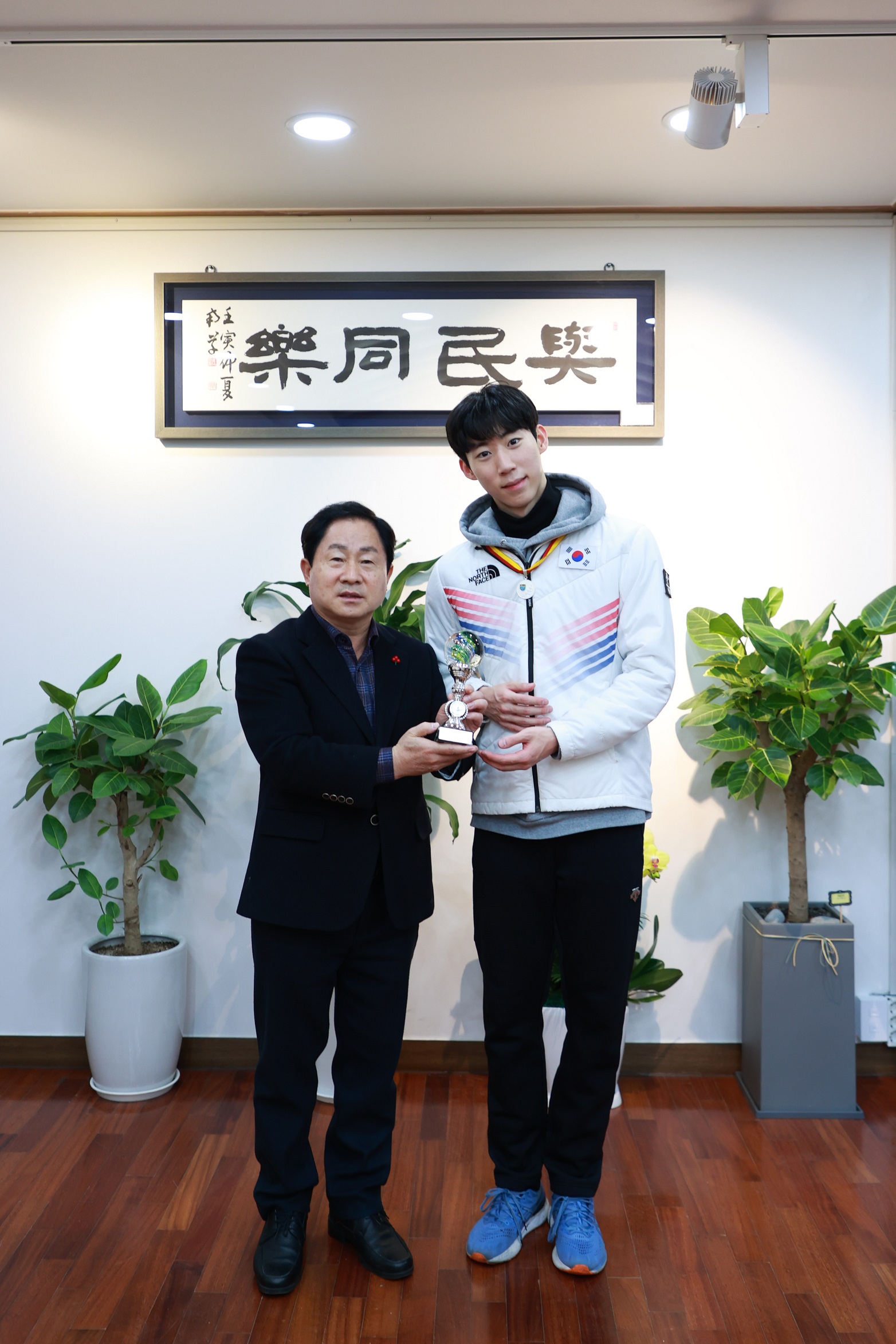 주광덕 남양주시장은 지난 21일 피겨스케이팅 남자 국가대표이자 금곡동 주민인 이시형 선수를 만나 격려하는 시간을 가졌다.