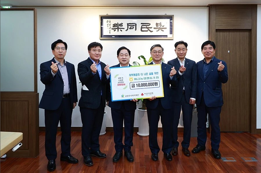 미금농협(조합장 김우겸)은 20일 남양주시 내 취약계층을 지원하기 위해 남양주시복지재단(대표이사 심우만)에 후원금 1천만 원을 기부했다.