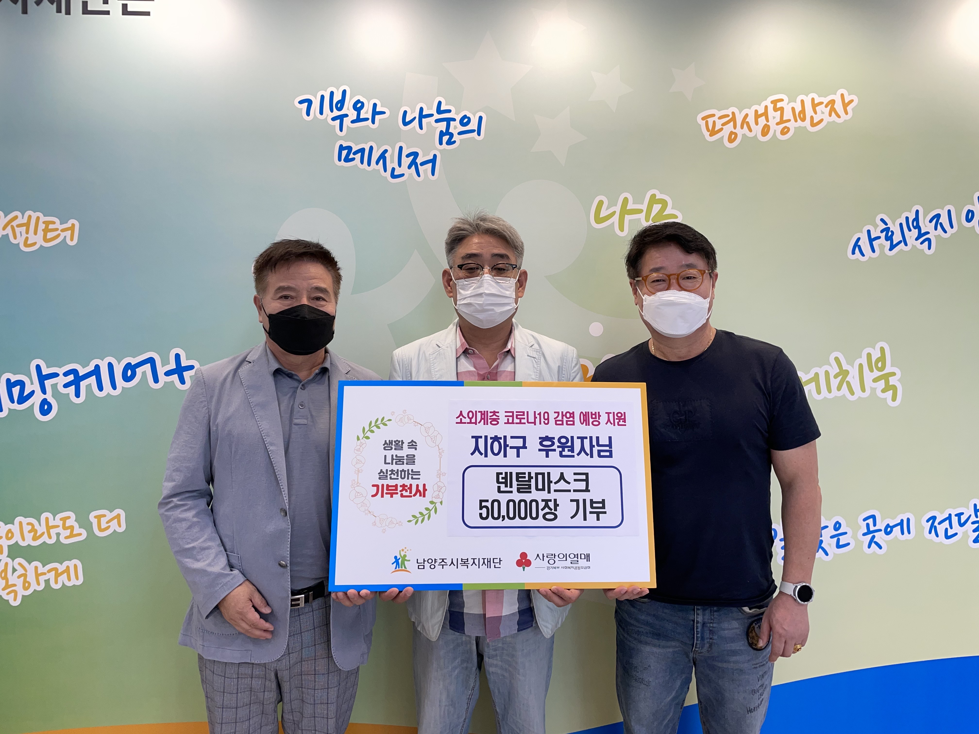 남양주시복지재단(대표이사 심우만)은 지난달 23일 남양주 시민인 지하구 씨가 취약계층의 개인 방역을 지원하기 위해 덴탈 마스크 5만 장을 기부했다고 6일 밝혔다.