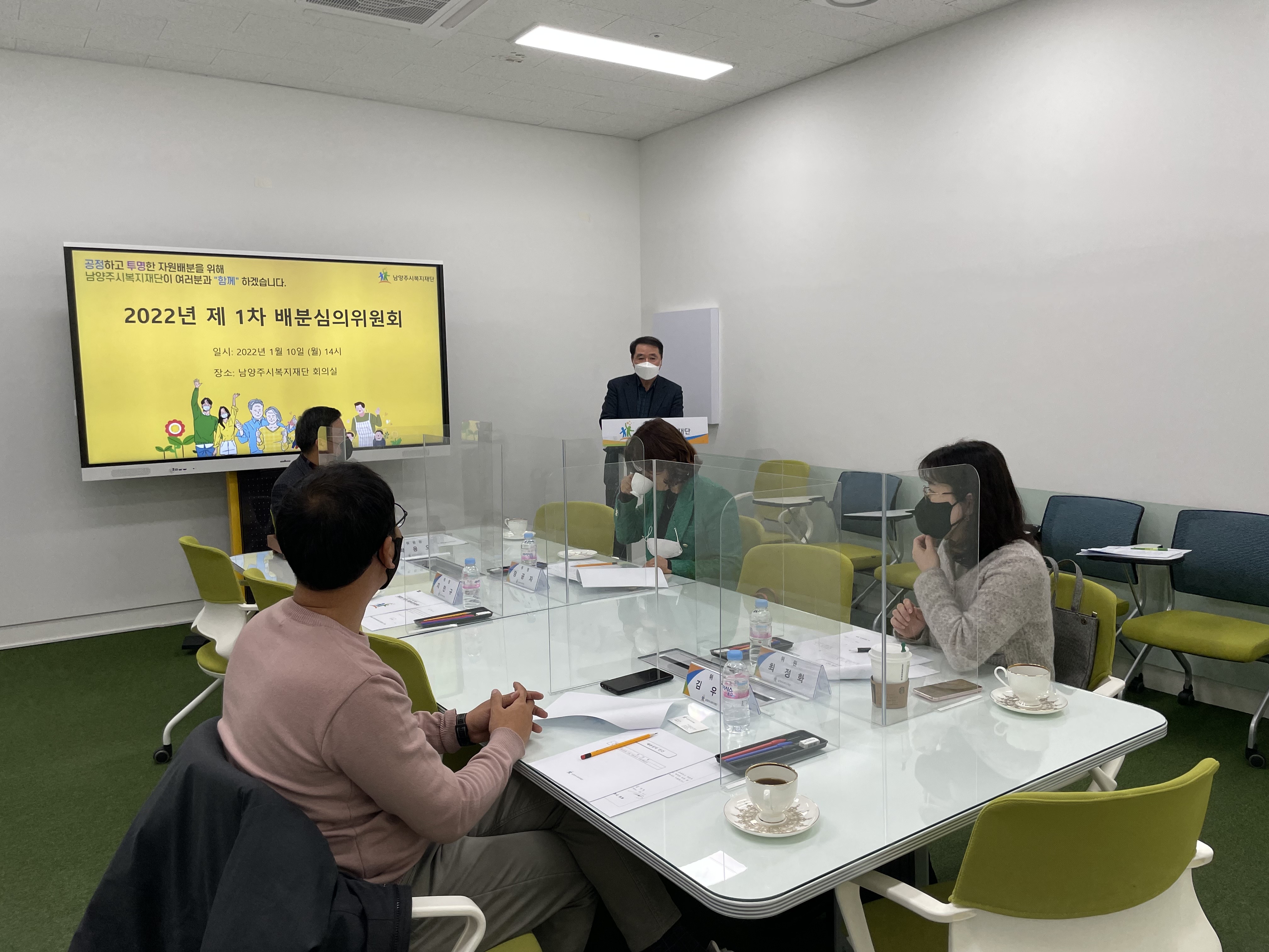 2022 제1차 배분심의위원회 | [연번] : 정보가 없습니다. | [일자] : 2022.1.10. 작성자 관리자 등록일자 2022년 1월 11일 13시 6분 16초 조회 558 남양주시 복지자원의 공정하고 투명한 재배분을 위한 2022 제 1차 배분심의위원회가 개최되었습니다. KakaoTalk_20220111_093016582_03.jpg [ Size : 2.39MB, Down : 299 ] 미리보기 다운로드 목록보기