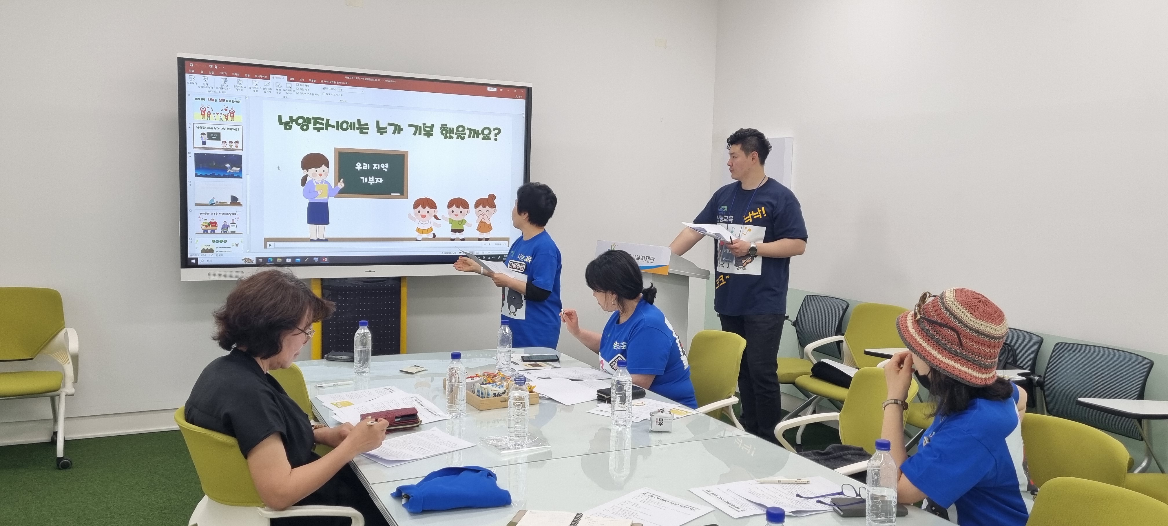 나눔캠페인강사단 월례회의 | [연번] : | [일자] : 2024.05.23 작성자 관리자 등록일자 2024년 5월 23일 19시 16분 2초 조회 326 나눔문화활성화를 위하여 양성된 나눔캠페인 강사단 5월월례회의가 복지재단회의실에서 진행되었습니다. 20240523_144647.jpg [ Size : 1.66MB, Down : 156 ] 미리보기 다운로드 목록보기