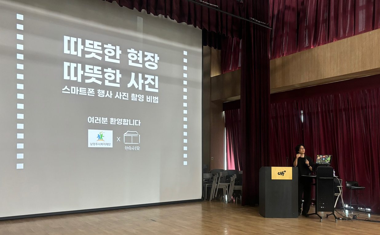 2025년 사회복지 종사자 역량강화 교육(홍보) | [연번] : | [일자] : 2025.9.3.(수) 작성자 관리자 등록일자 2025년 9월 3일 20시 37분 10초 조회 227 2025년 9월 3일(수) 남양주시 사회복지 종사자 역량강화교육 5회기를 실시하였습니다. 이번 교육은 '스마트폰으로 담는 행사의 순간포착 비법'을 주제로 오상민(천막사진관 대표) 강사님께서 진행해주셨으며,스마트폰을 이용한 5가지 촬영기법을 배우고 기관별 사진을 함께 피드백하는 시간을 가졌습니다.이번 교육을 계기로 각 기관의 좋은 프로그램들이 사진을 통해 더욱 생생하게 전달되고, 지역사회와 소통하는 소중한 매체가 될 수 있기를 기원하겠습니다. 250903 역량강화교육 5회기(1).jpg [ Size : 474.14KB, Down : 105 ] 미리보기 다운로드 250903 역량강화교육 5회기(3).jpg [ Size : 236.33KB, Down : 163 ] 미리보기 다운로드 250903 역량강화교육 5회기 (4).jpg [ Size : 368.08KB, Down : 161 ] 미리보기 다운로드 250903 역량강화교육 5회기 (2).jpg [ Size : 362.33KB, Down : 155 ] 미리보기 다운로드 목록보기