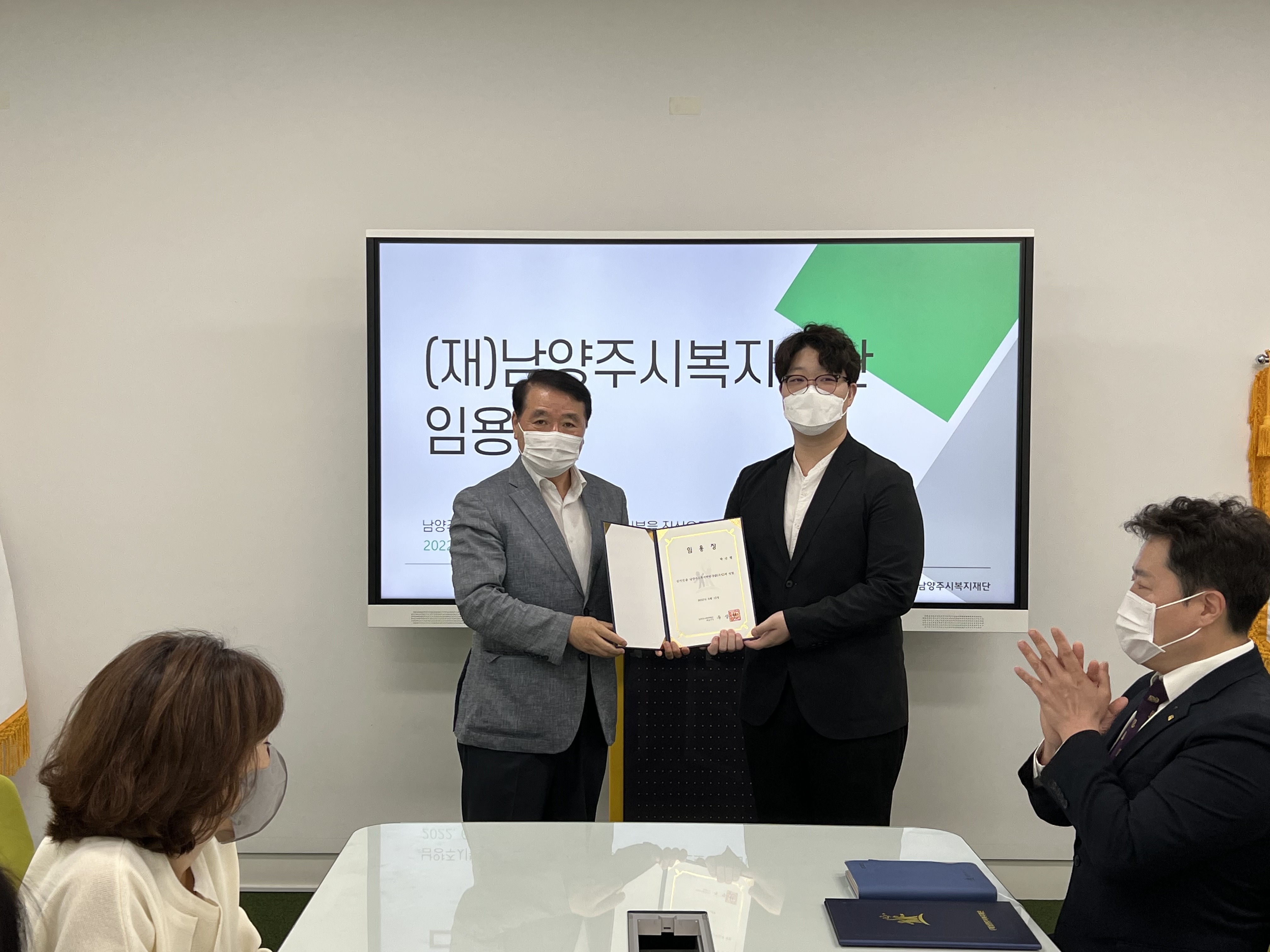 신규직원 임용식 | [연번] : 정보가 없습니다. | [일자] : 22.06.15. 작성자 관리자 등록일자 2022년 6월 15일 10시 28분 9초 조회 547 22.06.15.(수) 재단 내 회의실에서 신입직원 임용식이 있었습니다.신규 직원분들과 함께 올 한해도 열심히 달리겠습니다.감사합니다! 신규직원 임용식1.jpg [ Size : 1.56MB, Down : 332 ] 미리보기 다운로드 신규직원 임용식2.jpg [ Size : 1.67MB, Down : 337 ] 미리보기 다운로드 목록보기
