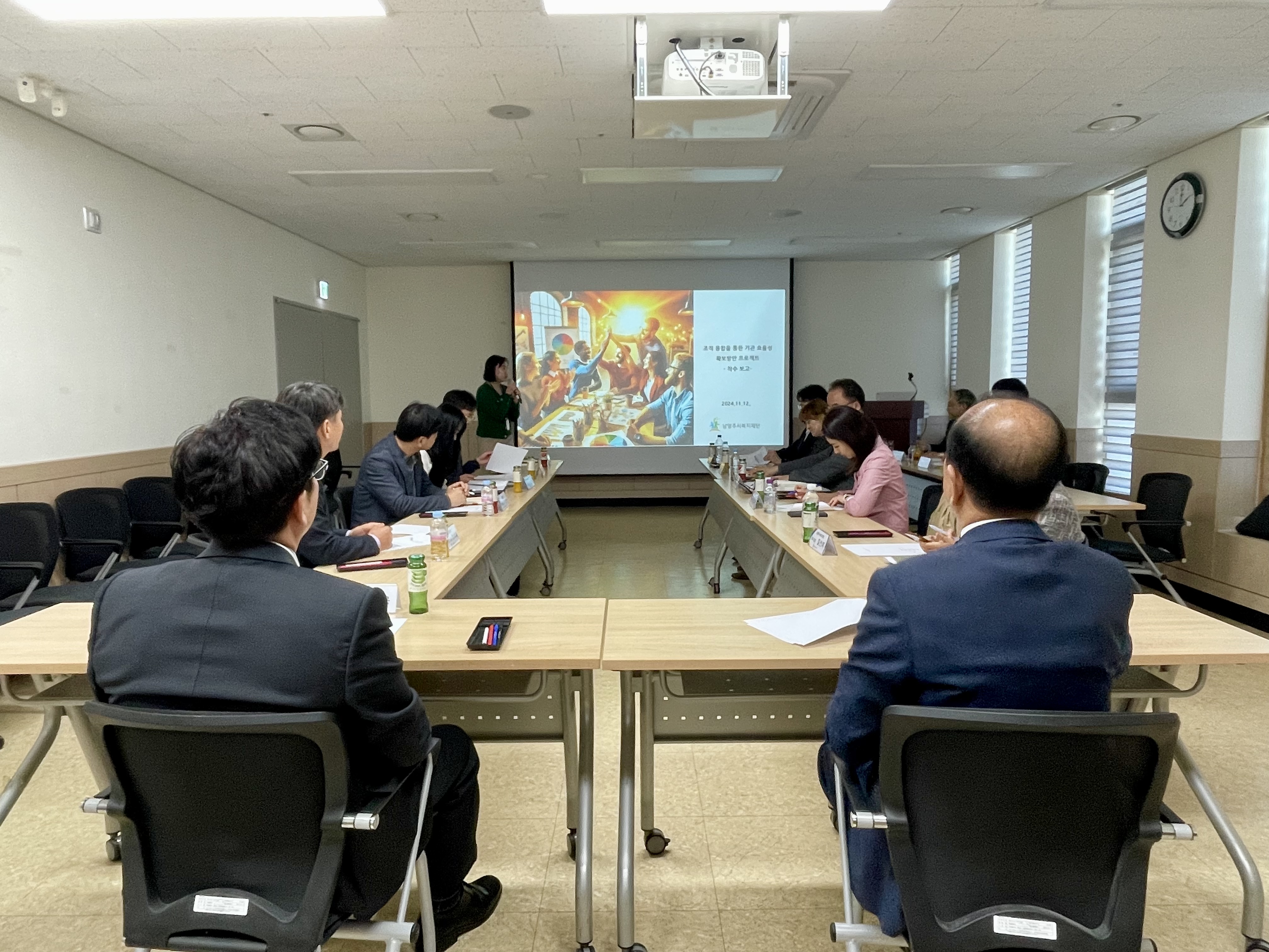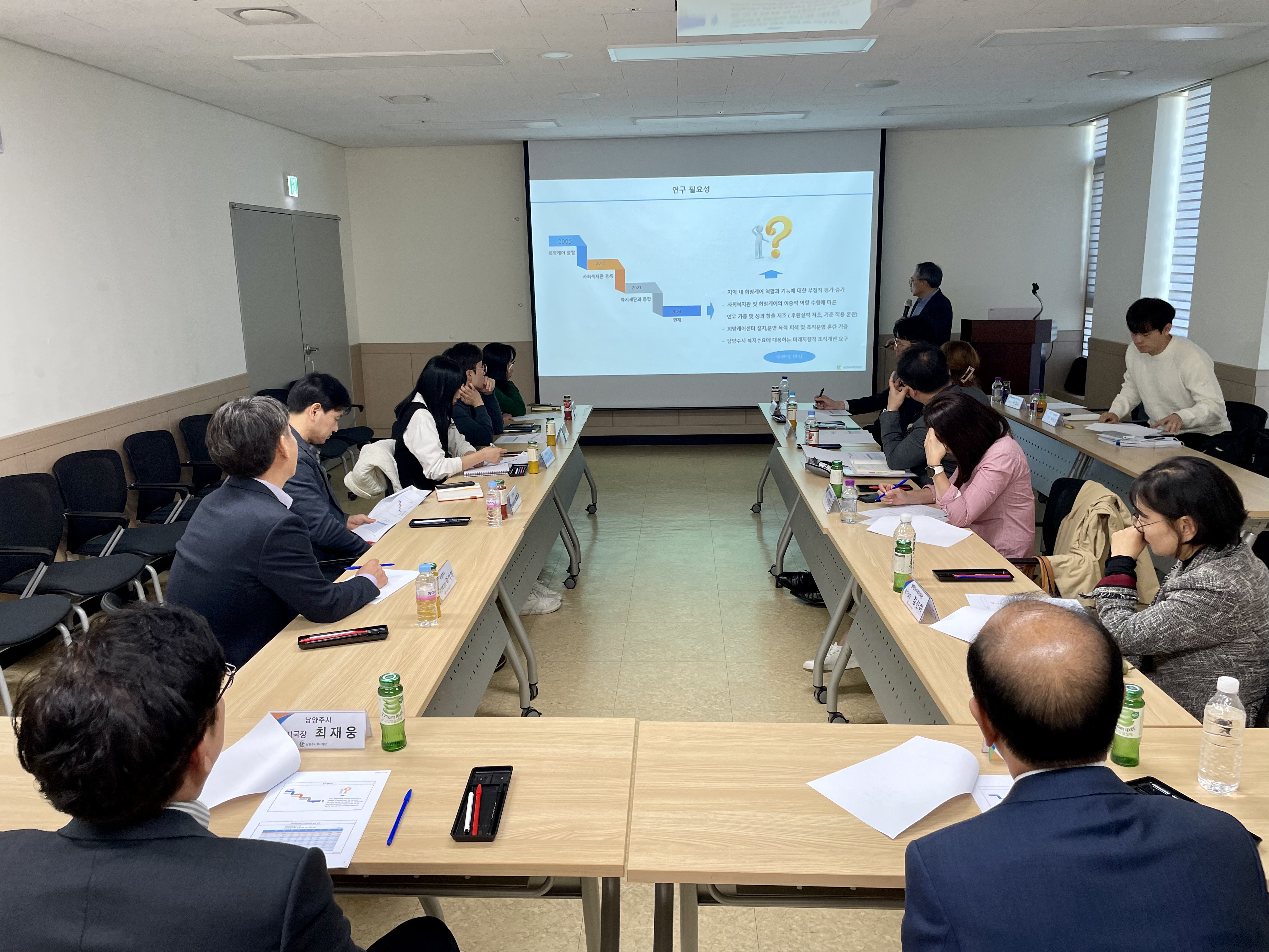 「조직융합을 통한 조직 운영의 효율성 확보 방안 연구」착수보고회 | [연번] : | [일자] : 2024.11.12.(화) 작성자 관리자 등록일자 2024년 11월 21일 9시 26분 3초 조회 335 2024년 11월 12일(화) 오후 2시 다산행정복지센터 소회의실에서「조직융합을 통한 조직 운영의 효율성 확보 방안 연구」의 착수보고회를 진행하였습니다.남양주시복지재단 대표이사와 희망케어센터 센터장, 두 기관을 담당하는 복지국 공무원들까지 모여연구계획과 추진방향에 대해 안내하고 협조 및 요청사항을 논의하는 시간을 가졌습니다.이 날 공유된 의견들을 토대로 실효성 있는 연구가 되도록 노력하겠습니다. 2024.11.12. 조직융합 연구 착수보고회 1.jpg [ Size : 3.14MB, Down : 165 ] 미리보기 다운로드 2024.11.12. 조직융합 연구 착수보고회 2.jpg [ Size : 3.53MB, Down : 171 ] 미리보기 다운로드 2024.11.12. 조직융합 연구 착수보고회 3.jpg [ Size : 3.4MB, Down : 189 ] 미리보기 다운로드 목록보기
