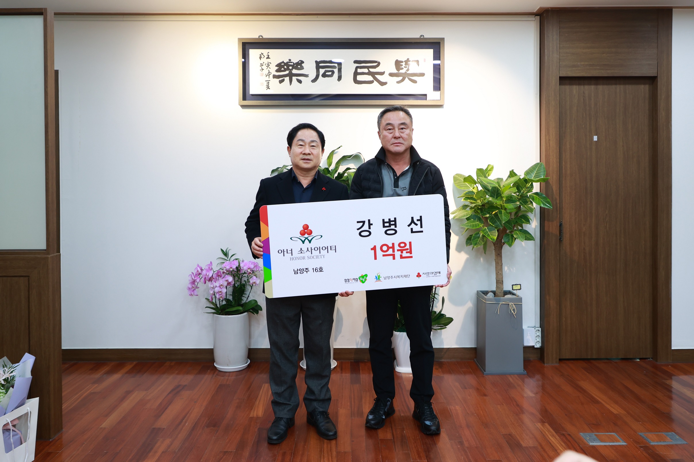 아너소사이어티 강병선 | [연번] : 남양주 16호 | [일자] : 2023.01.11. 작성자 관리자 등록일자 2023년 1월 30일 9시 57분 37초 조회 775 ▷ 남양주 16호 아너 소사이어티 가입(2023년 1월) - 제빵소덤 대표 ※ 아너 소사이어티란? 1억원 이상을 일시 혹은 5년 이내 납부 약정한 고액기부자 2023-01-11 강병선 대표 아너소사이어티 가입식.jpg [ Size : 746.33KB, Down : 368 ] 미리보기 다운로드 목록보기